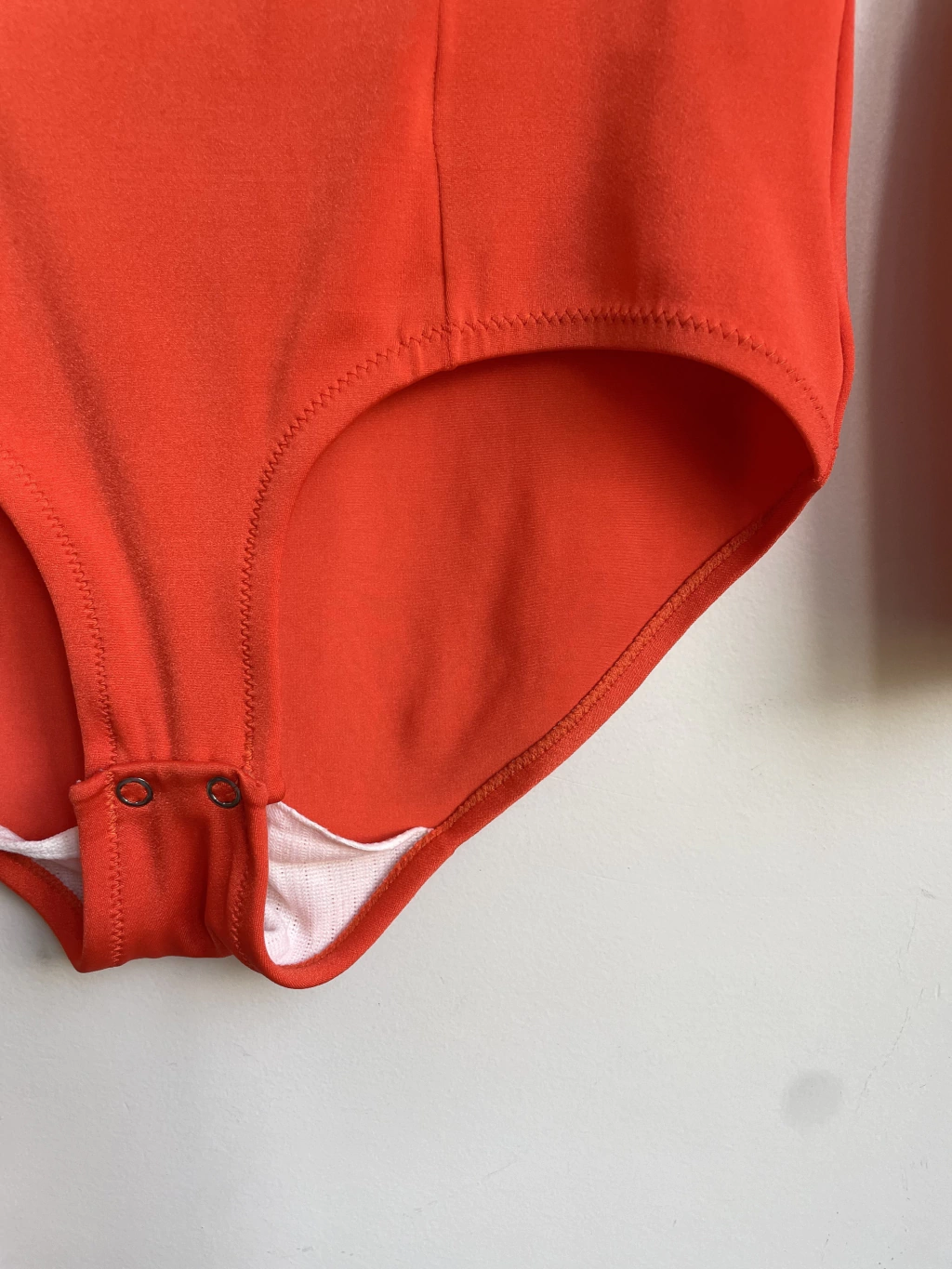 Body vintage em lycra, manga alongada e fecho entre as pernas.