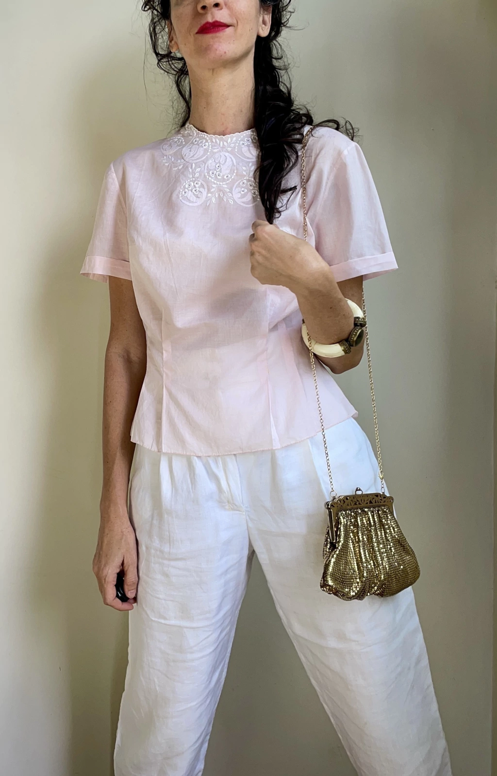 Belissima e rara camisa vintage em cambraia de algodao rosa bebê